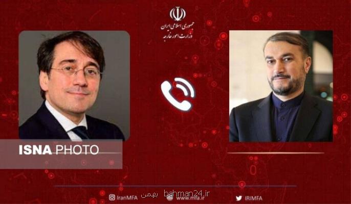 بهمن: در تماس تلفنی «خوزه مانوئل آلبارز» وزیر امورخارجه اسپانیا و حسین امیرعبداللهیان، وزیر امور خارجه ایران با اهمیت ترین موضوعات دو جانبه میان دو کشور مورد گفت و گو و تبادل نظر قرار گرفت.