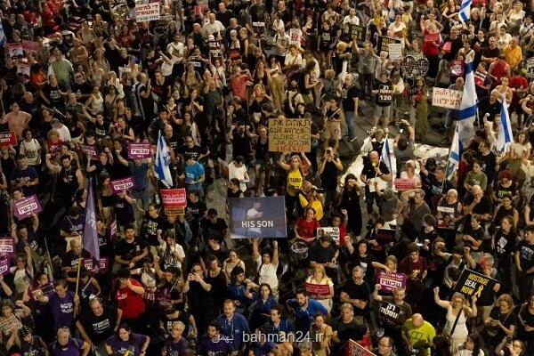 معترضان صهیونیست در تظاهرات اعتراضی خود خواهان سرنگونی کابینه نتانیاهو و بازگرداندن فوری اسرای صهیونیست از نوار غزه شده اند.